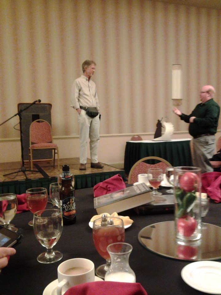 For the last decade, after the release of a book, Mr. Donaldson has agreed to meet with fans of his, mostly from Kevin’s Watch, for a dinner and interactive Q&A session. Dubbed “Elohim-fest” after a race of characters that Thomas Covenant encounters, this “meet and greet” has reached its fourth incarnation, with over 40 of us attending from as far away as Australia and Finland. I myself attended for the first time, with two goals. One was to merely shake the man’s hand and acknowledge everything he’s done for me; the other was to ask him one of those “how do you do what you do” questions, specifically around the struggles I’ve had with voice in my stories. In poetry, meter and rhyme can dictate voice; in prose, I still struggled with it.